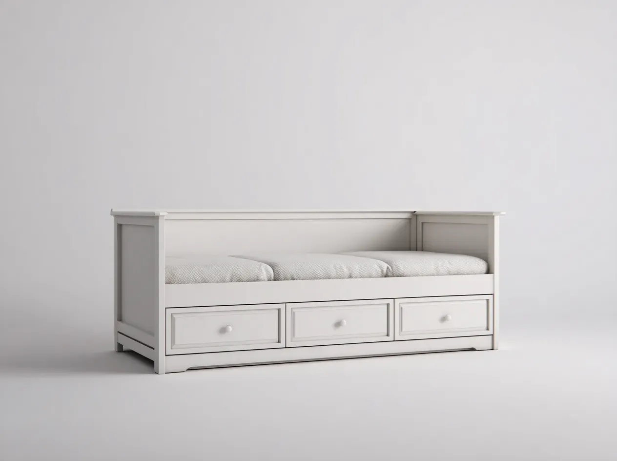 Ce canapé lit est conçu pour offrir une solution d'assise et de couchage fonctionnelle dans une chambre, une chambre d'amis ou un espace polyvalent. Sa structure linéaire et ses proportions équilibrées permettent une intégration harmonieuse dans un intérieur clair et ordonné.